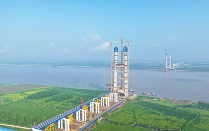 4月24日,中交路建承建的湖北省最大跨径双主缆八车道悬索桥——汉南长江大桥南岸主塔中横梁混凝土浇筑工作顺利完成。